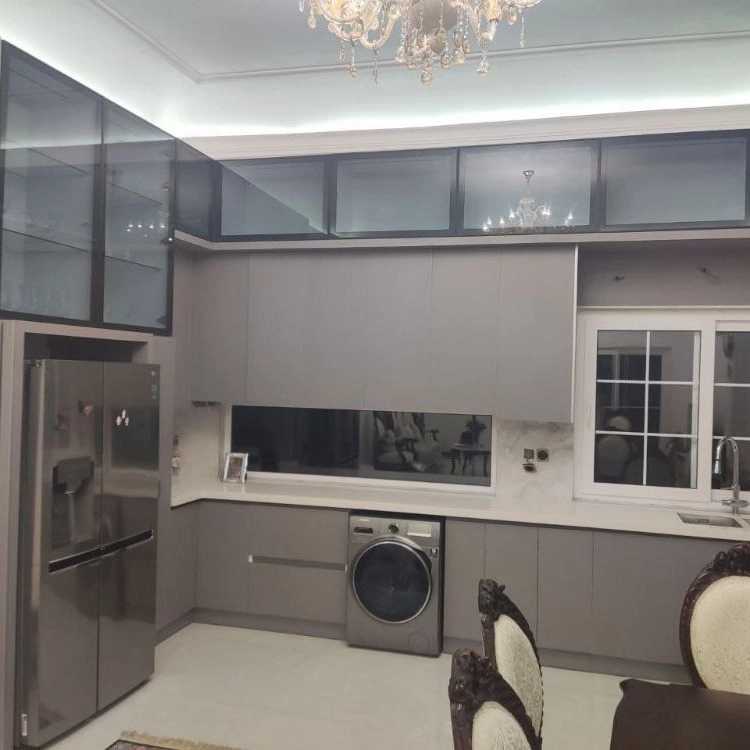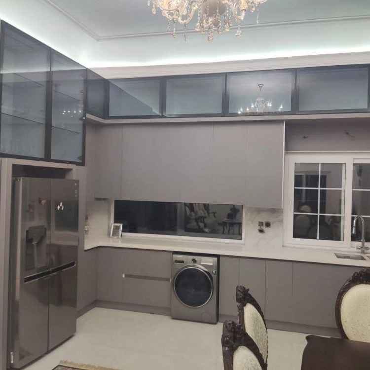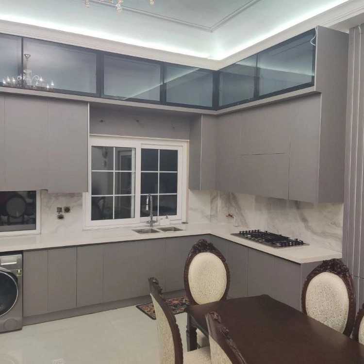 کابینت mdf مات به رنگ طوسی ترند و درب های فریم لیس