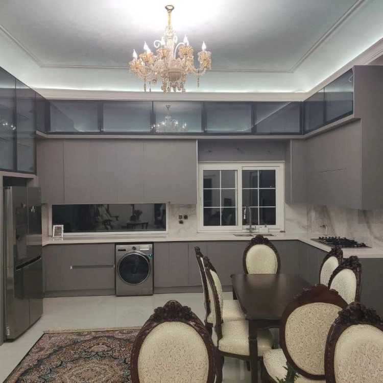 کابینت MDF مات طوسی با درب فریم‌لیس، طراحی مدرن و شیک برای آشپزخانه‌های ایرانی. مقاوم، با کیفیت بالا و نصب حرفه‌ای. انتخاب ایده‌آل برای زیبایی و کاربردی بودن فضای آشپزخانه شما. مشاوره و سفارش آنلاین موجود است.